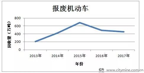 根据全国汽车流通管理信息系统统计,2017年,全国689家报废汽车回收拆解企业共回收报废机动车174.1万辆,同比下降3.2%,其中汽车147.2万辆,同比下降7.6%,摩托车27万辆,同比增长31%。
