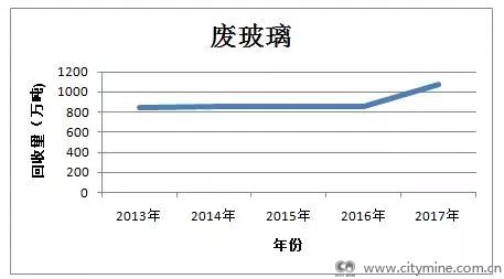 2017年我国废玻璃回收量为1070万吨,同比增长24.4%。其中废平板玻璃回收量为600万吨,占总回收量的56.1%;废日用玻璃回收量335万吨,占总回收量的31.3%;其他废玻璃回收量为135万吨,占总回收量的12.6%。