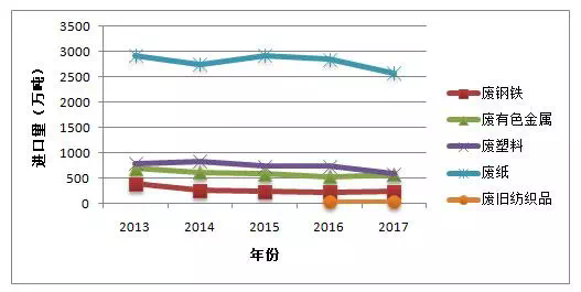 △ 图4 2013-2017年我国再生资源进口趋势图