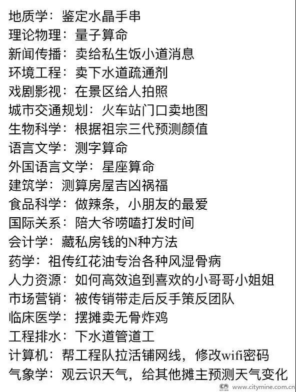 有的则从所学专业和从事行业寻找出路: